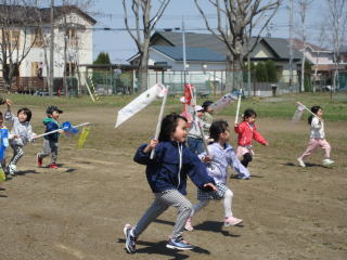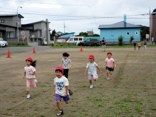今年で53回目の運動会です。親子競技の帽子取り、保護者競技という名の重学生以上自由参加の綱引き、祖父母や将来の祖父母が参加する競技、まるで昭和時代の地域運動会です。勝って嬉しい運動会よりも「最後までやりきる運動会」「がんばれ〜より自分で頑張ろうとする運動会」に目標を置いています。勝利より最後までやりきることも大事です。そして、昼には家族、祖父母や親せきの叔父叔母でお弁当を囲む姿は今では見られない光景となりました。手頭くりでも、デリバリーでも構いから、みんなでワイワイ一緒に食べることが運動会の思い出に深みを与えます。この子たちが大人になった時、「お母さんの幼稚園の運動会はね・・・とっても面白かったよ」と言える思い出になってほしいと思います。
