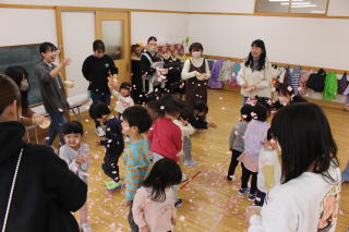 職員劇「はなさかじいさん」では、ポチ(犬)を無理やり引っぱる意地悪なおばあさんに、非難の声があがり、最後は枯れ木に桜の花が満開に咲く仕掛けに「わぉ〜」と驚きの声が響くなど楽しんでいたようです。いよいよ明日から31名に学園生活の開始です。